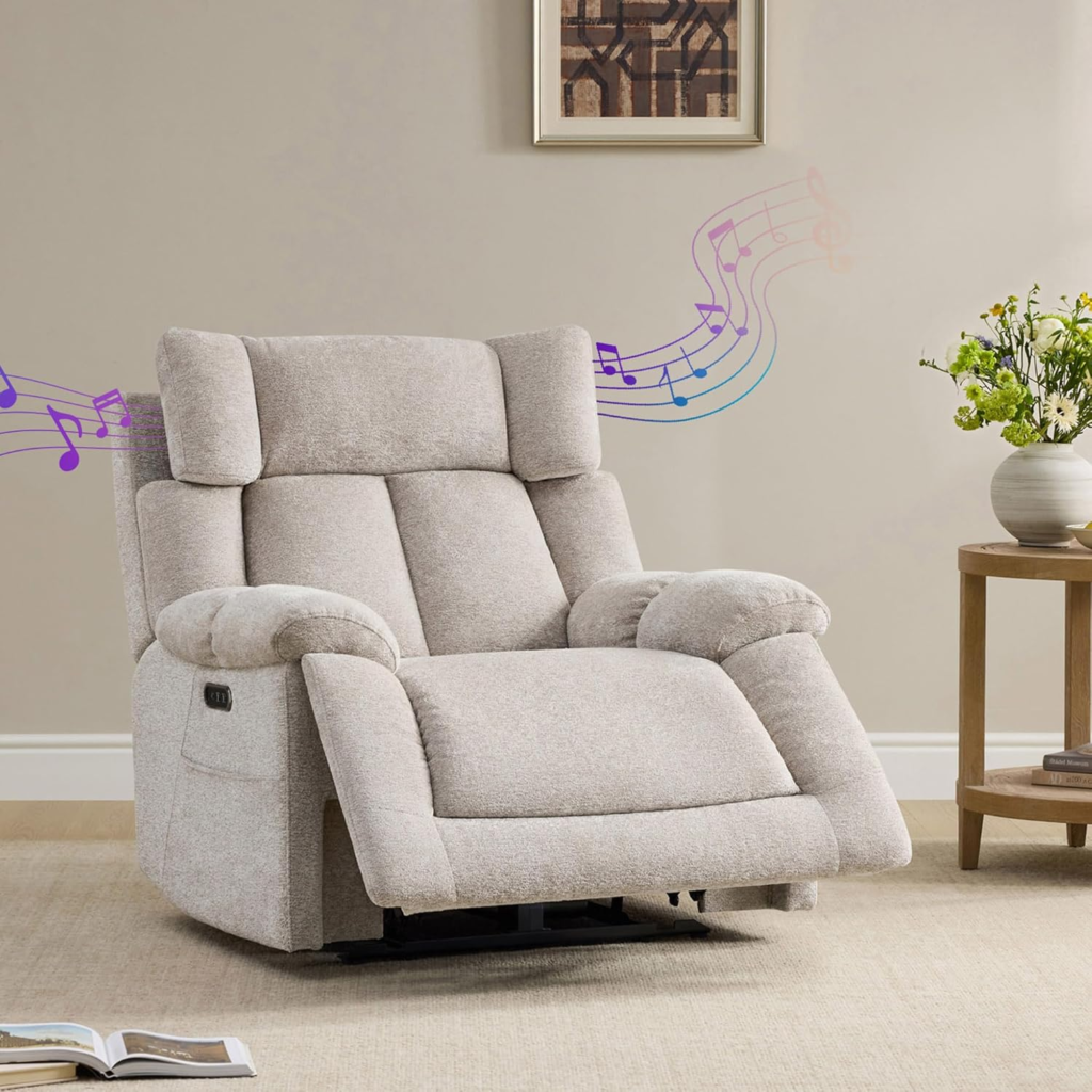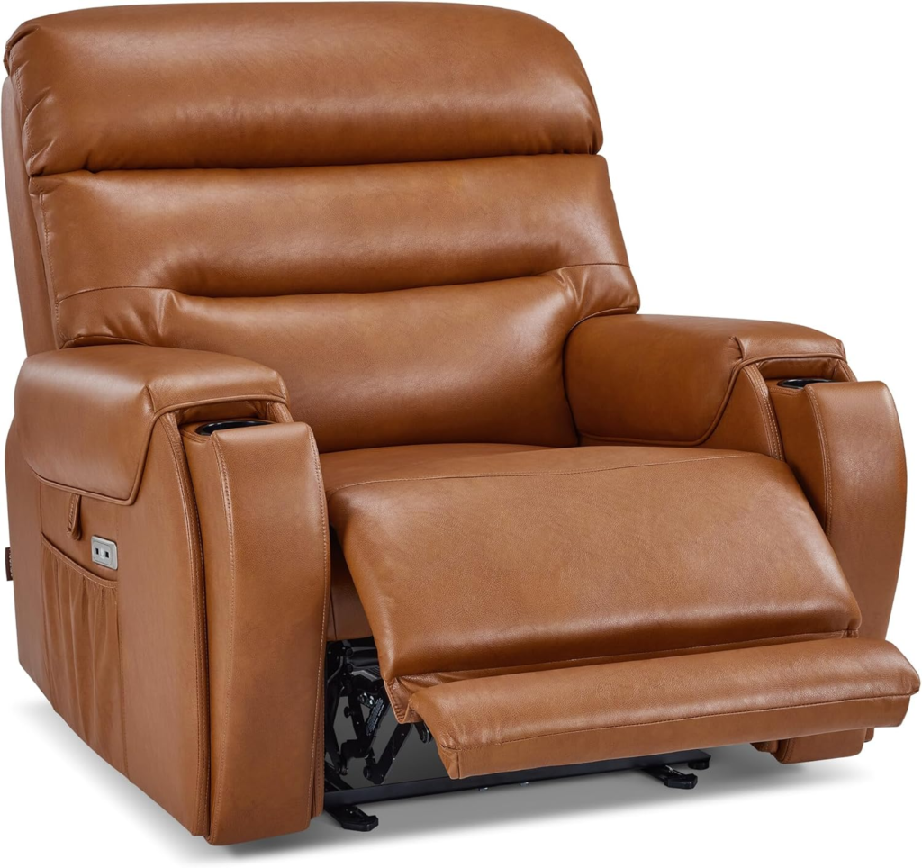 An oversized recliner provides extra cushioning and wider seating, perfect for relaxing evenings.
